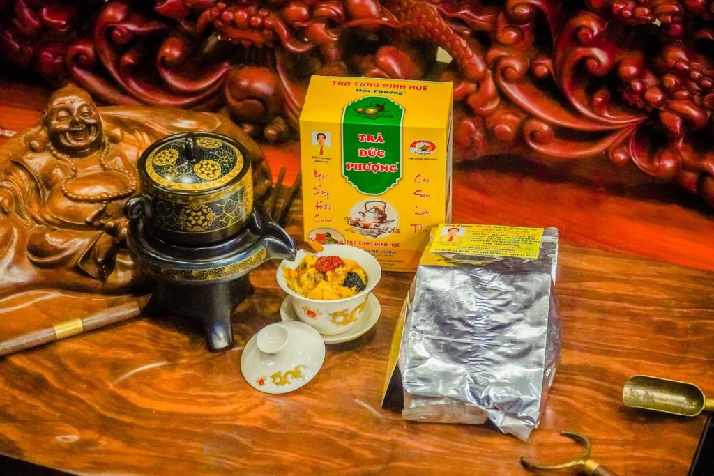 - Teh herbal Quang Ninh (pastikan tanpa campuran alkohol atau bahan non-halal)